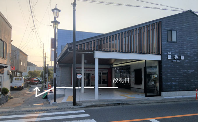 長谷寺側の改札を出てまっすぐ、目の前の案内版脇の小さな階段を降りて右に曲がります