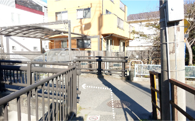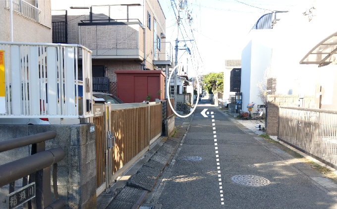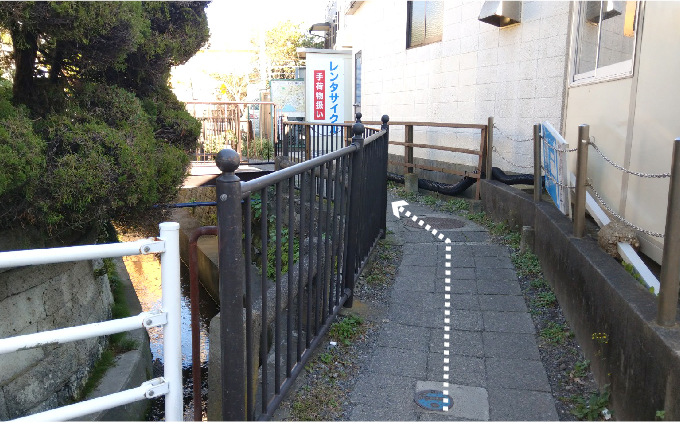 レンタルサイクルを通り過ぎて、小さな橋に突き当たったら左に曲がります